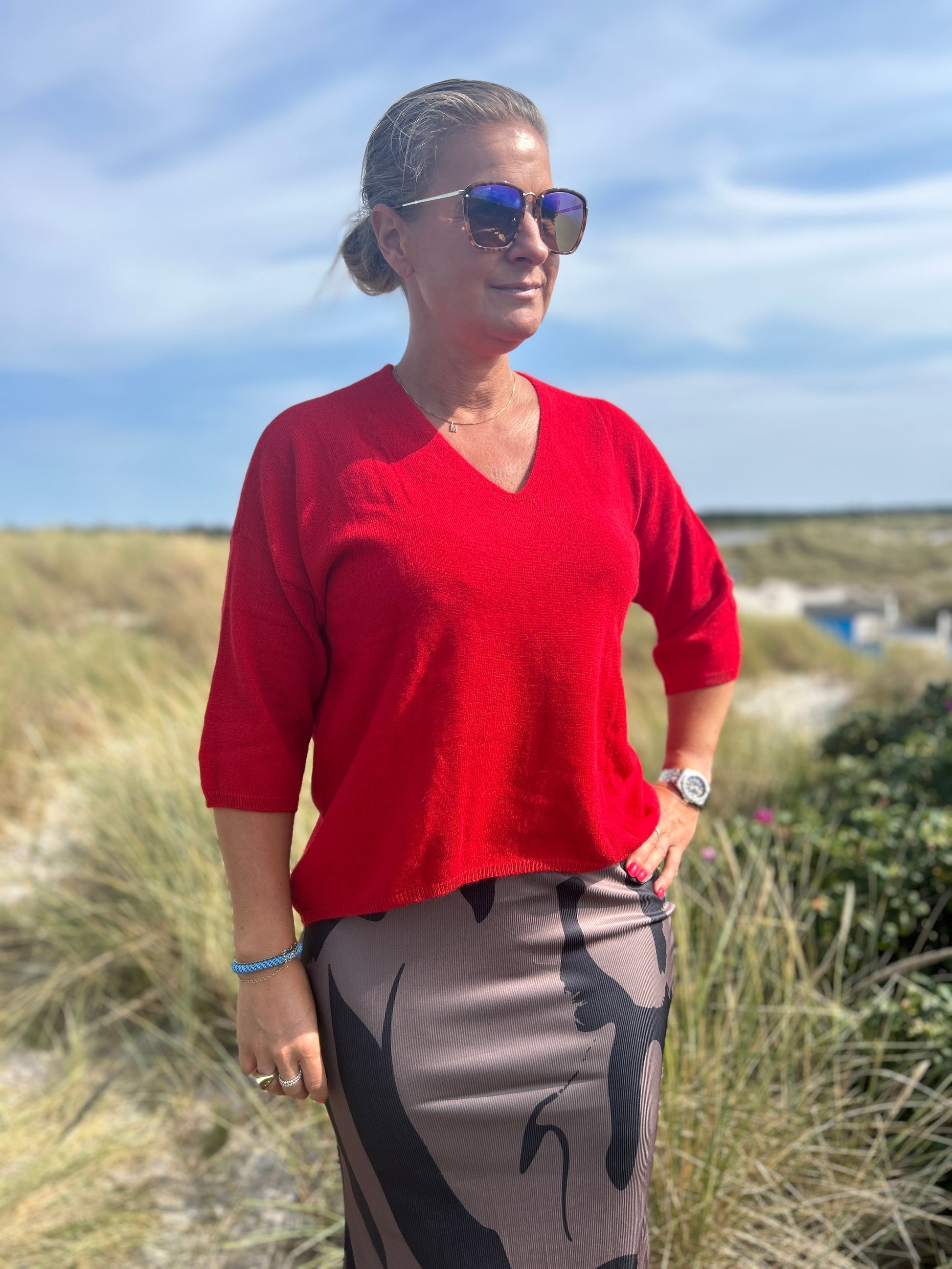 Jag är mycket nöjd med min V-ringade tröja som jag köpte i ljusblått. Den är mjuk och lätt och passar till allt. Kashmir får en att känna sig elegant utan ansträngning. Jag kommer att köpa en till i en annan färg framöver.