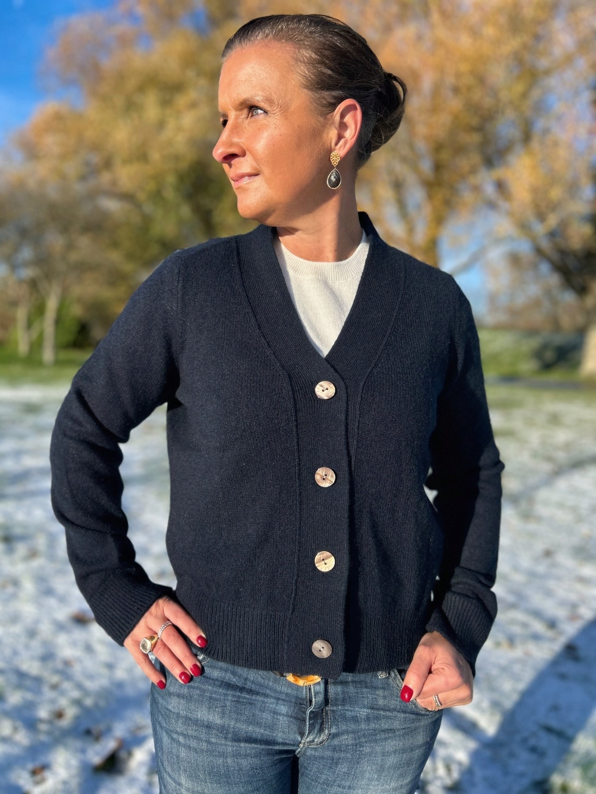 Jag är väldigt nöjd med min dark blue Isabell sweater. Den är så skön att bära med endast ett linne under eller över en skjorta. Sitter snyggt och löst och är läcker till både jeans och kjol. Triangle scarfen är perfekt detalj nu på hösten. Är så nöjd med mitt köp.