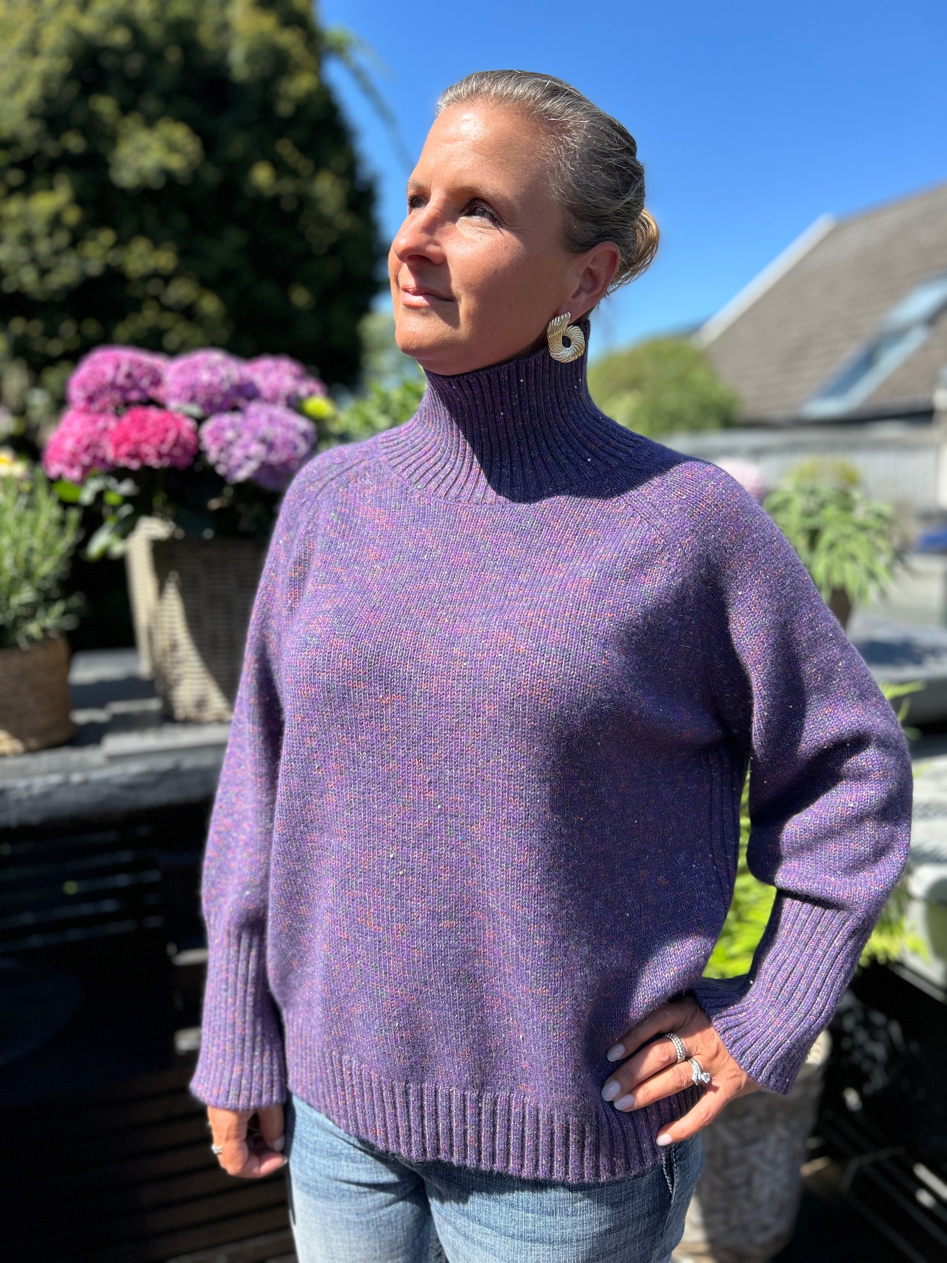 Så fin och skön! Älskar detaljerna och modellen - att den är lite längre i ryggen och ribbad i sidorna. Hade gärna haft den i helgrått utan glitter också 😊