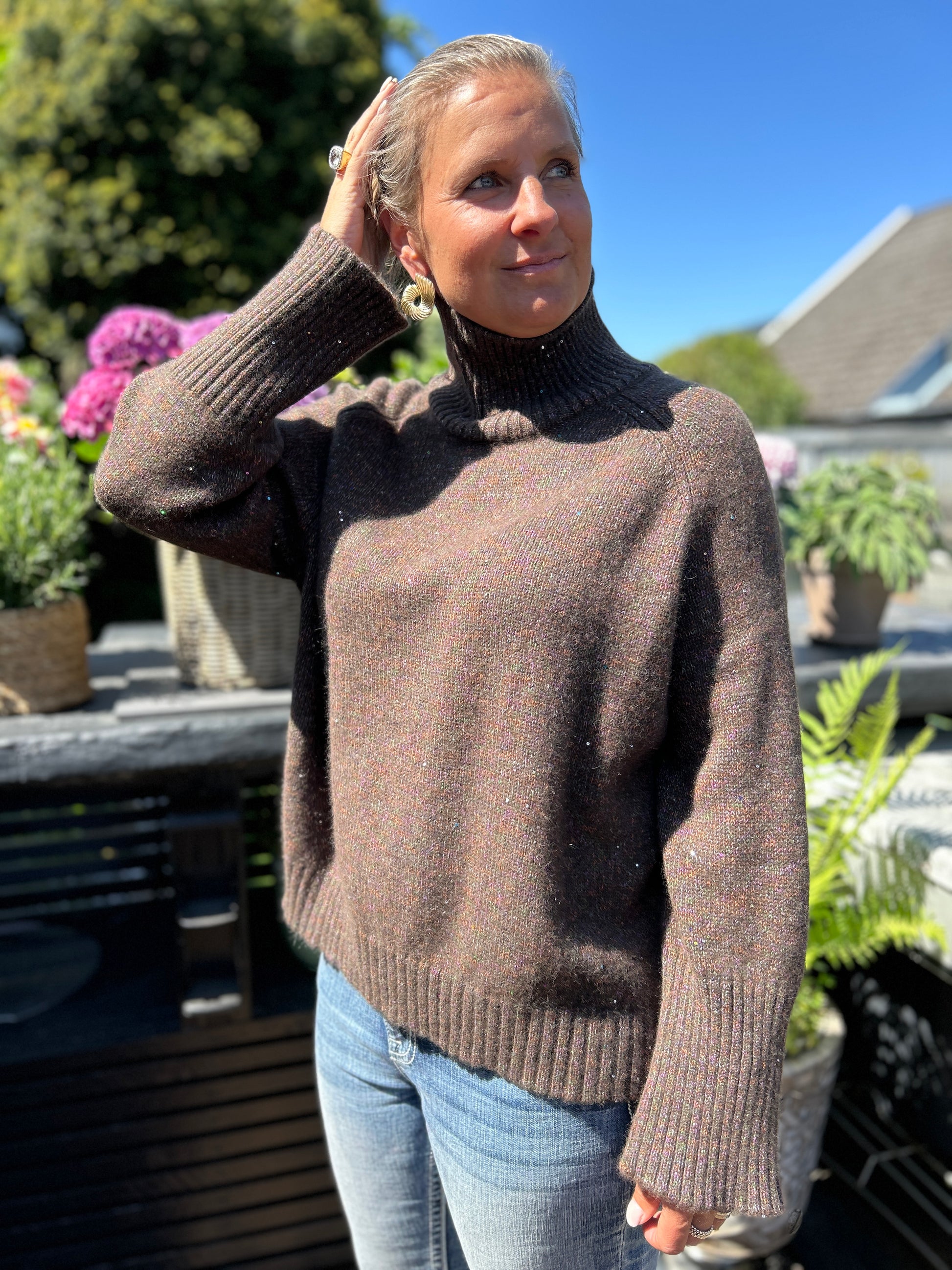 Lyxig Kashmir polotröja med Glitterdetaljer i 100% cashmere - Ett Måste i Varje Garderob