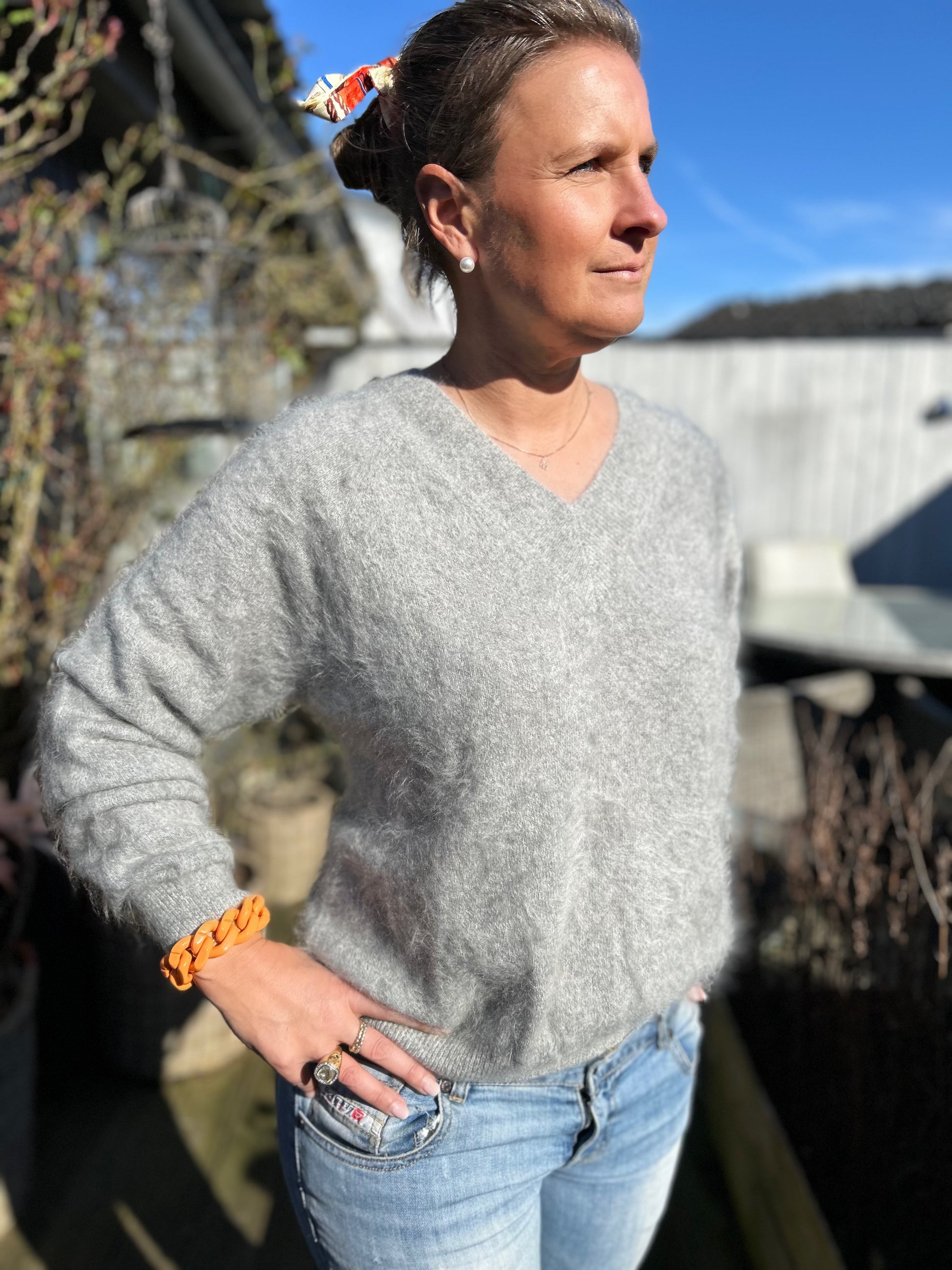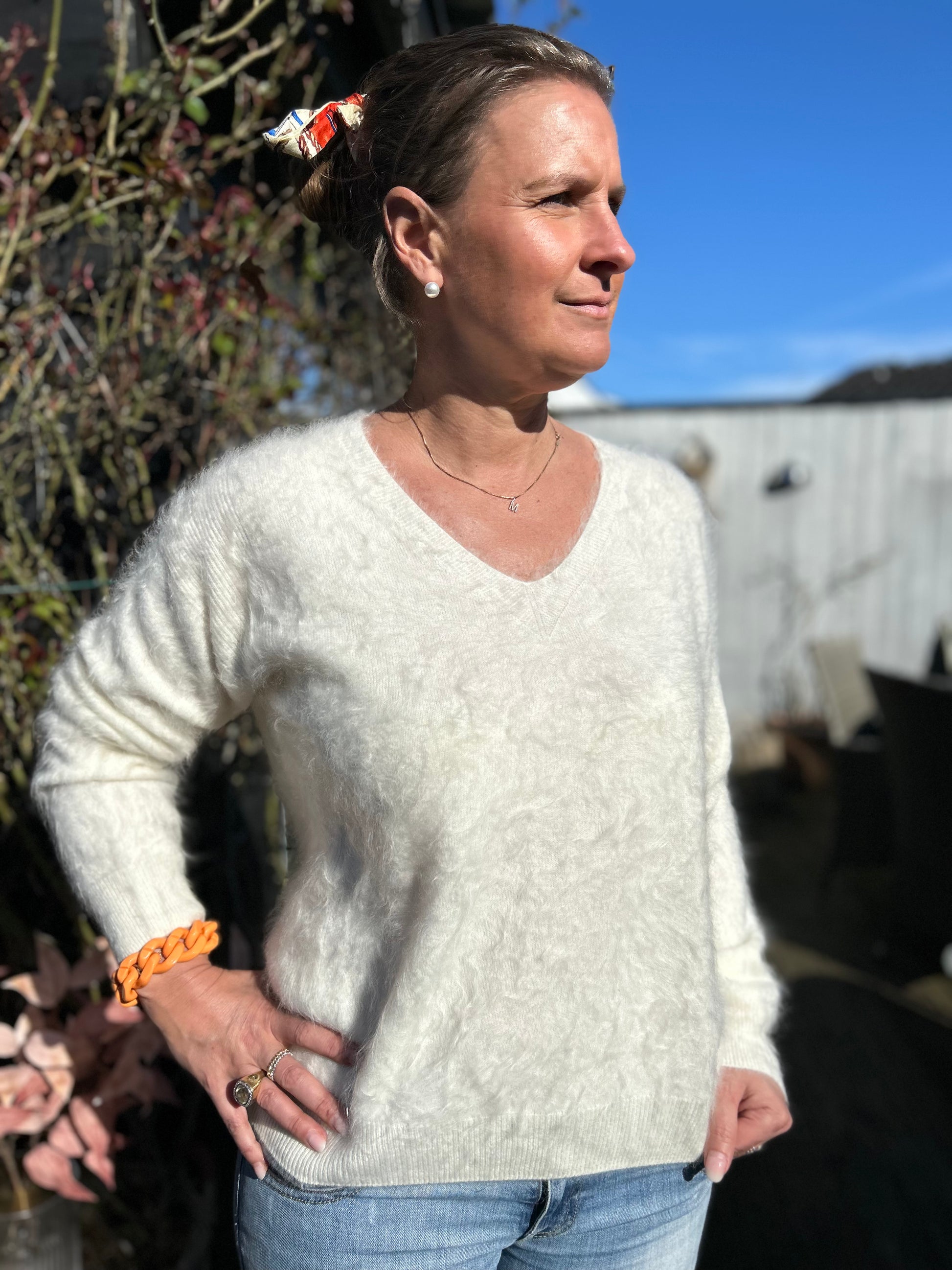 Modern Borstad Cashmere-Tröja med V-Ringning