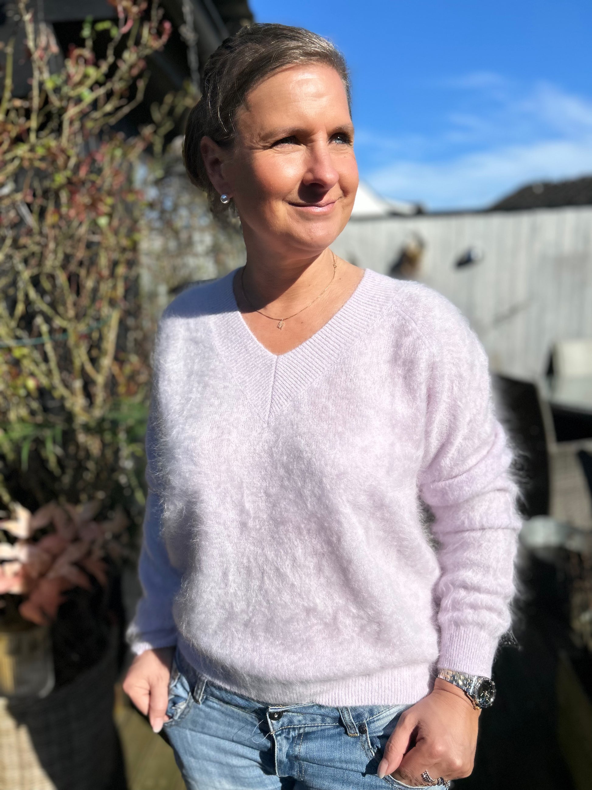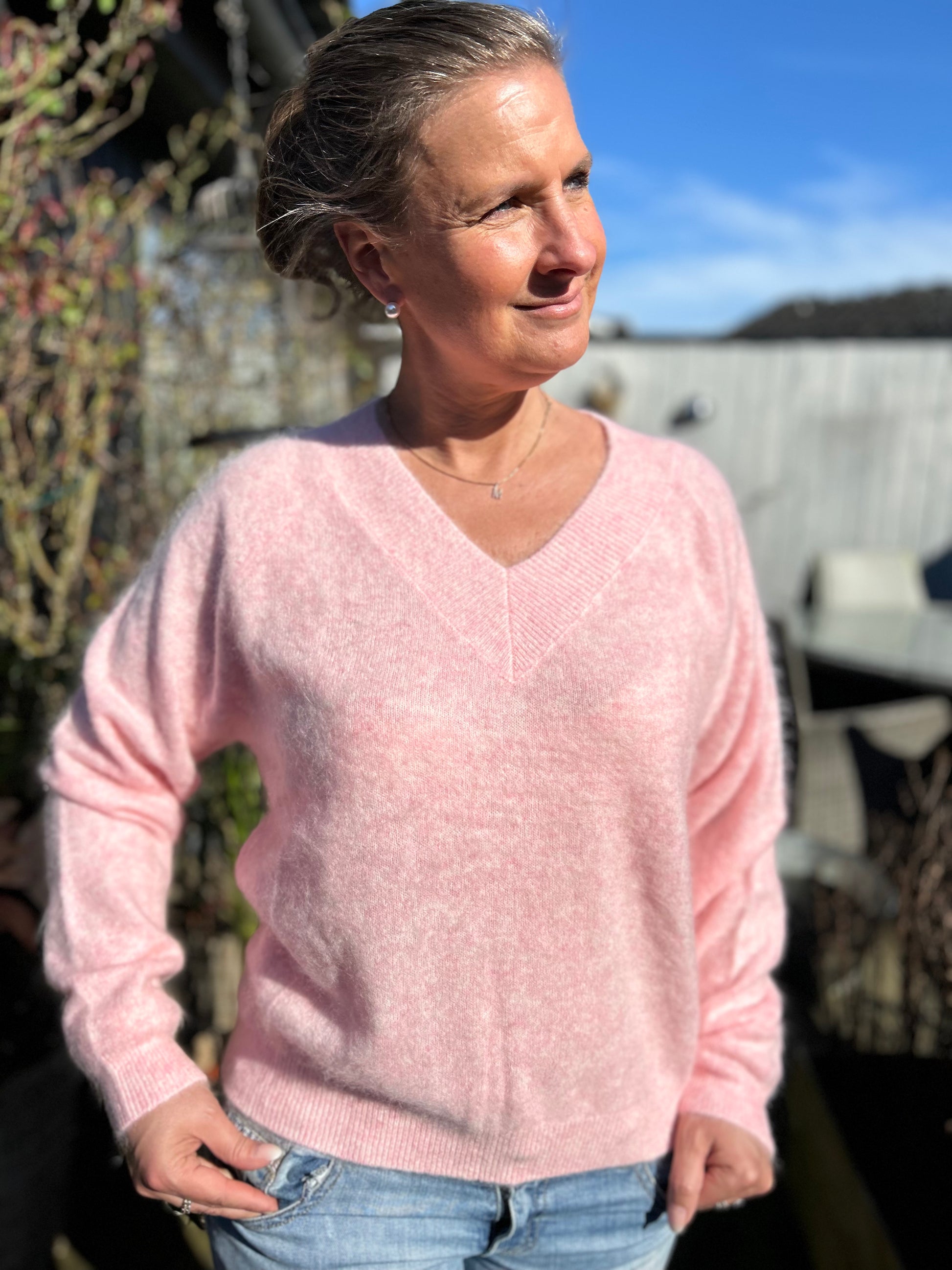 Borstad kashmirtröja Victoria V-neck ljusrosa
