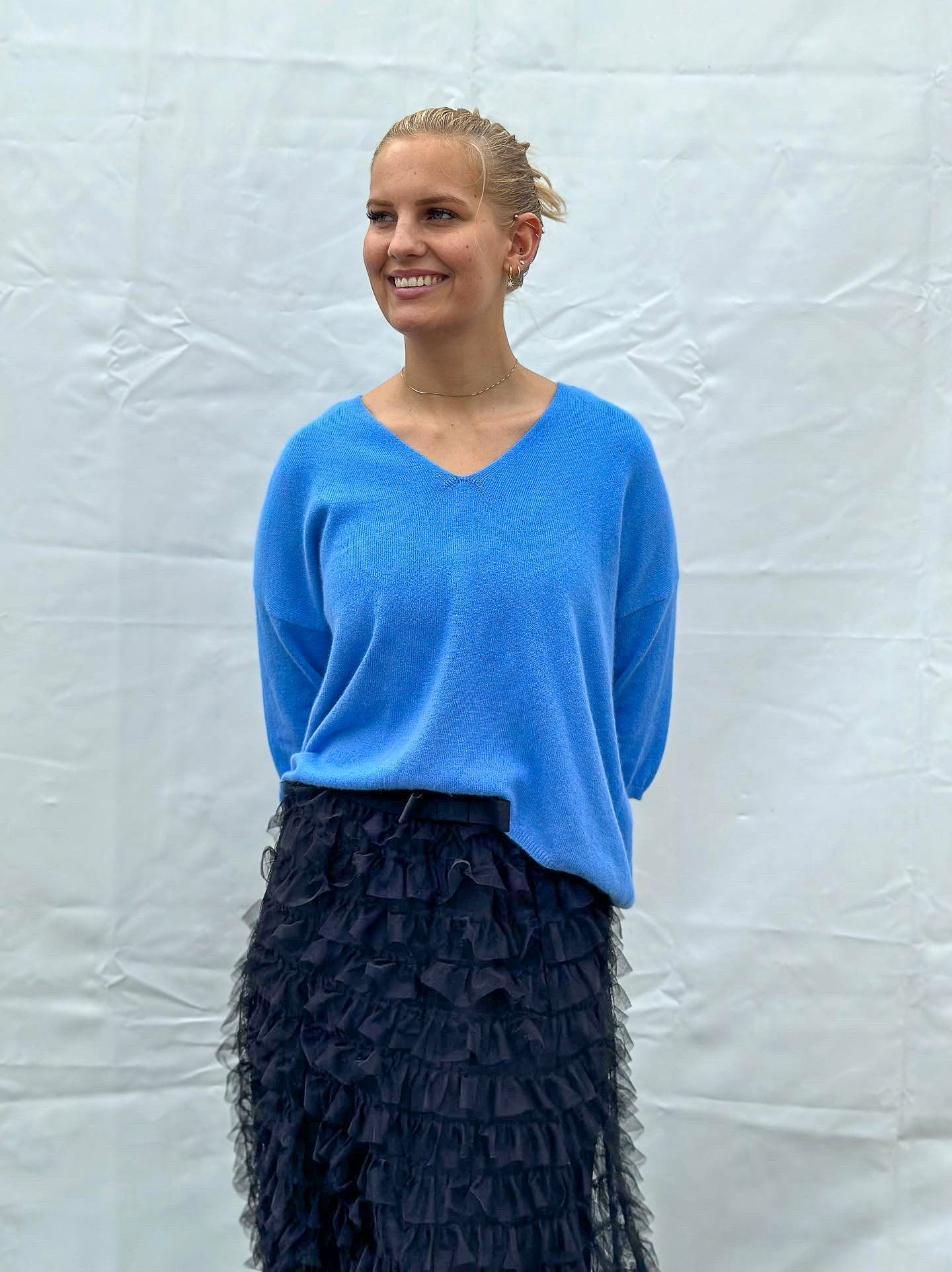 Jag är mycket nöjd med min V-ringade tröja som jag köpte i ljusblått. Den är mjuk och lätt och passar till allt. Kashmir får en att känna sig elegant utan ansträngning. Jag kommer att köpa en till i en annan färg framöver.
