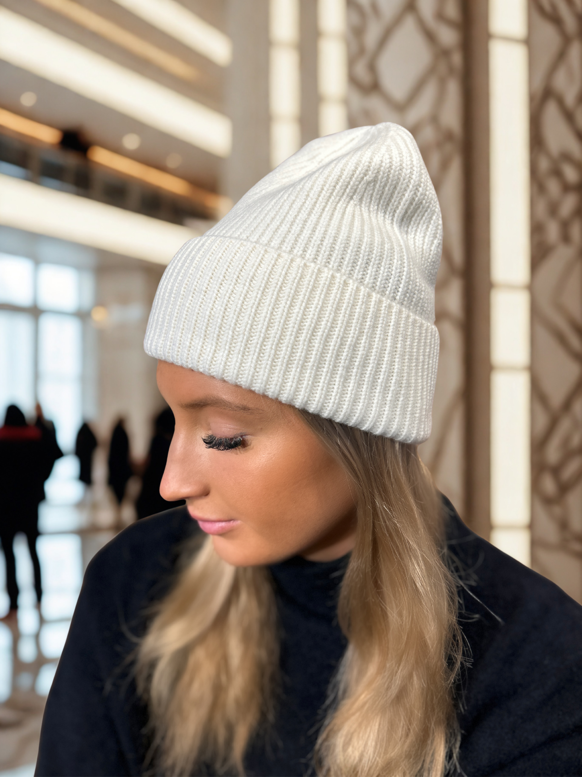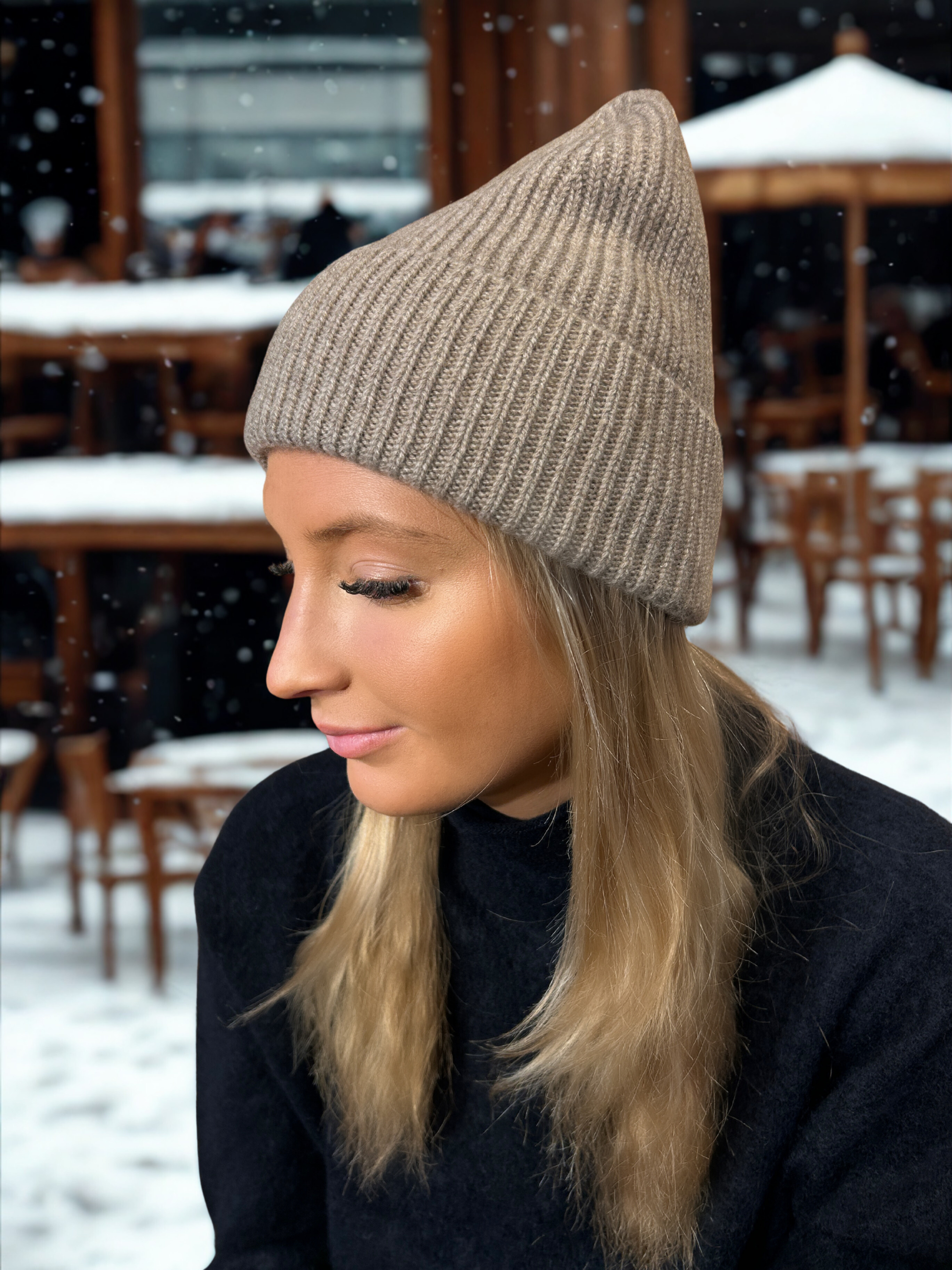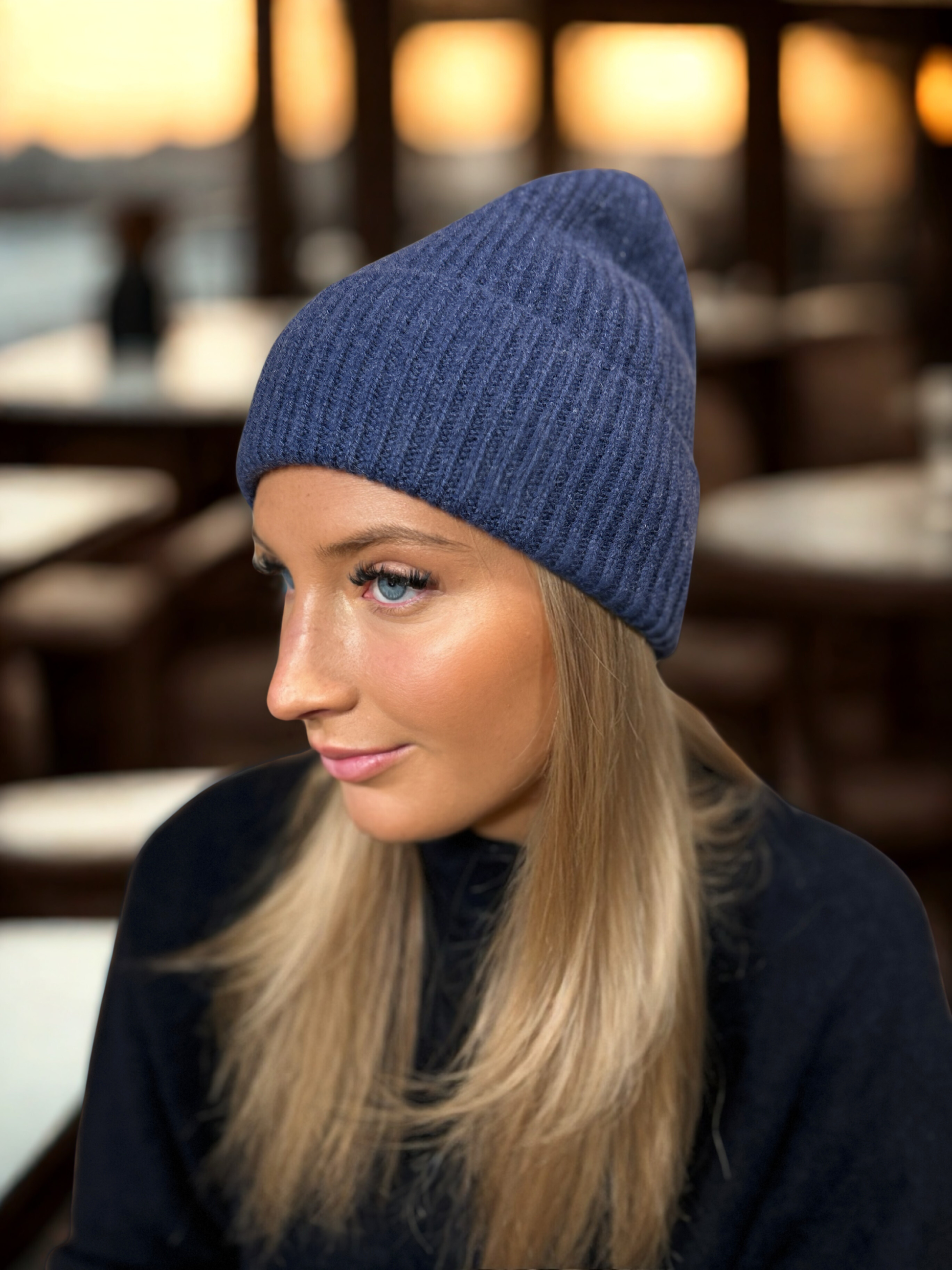 En ribbad kashmir mössa i 100% cashmere med uppvikt kant och tidlös unisex-design. Denna mjuka och varma mössa kashmir är one size och formar sig fint efter huvudet, och passar både dam och herr. Finns i över 10 unika färger.