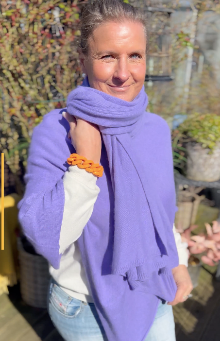 En helt underbar tunn, men ändå värmande , scarf i finaste kashmir. Jag köpte min andra nu, en chokladfärgad som passar till det mesta i höst och vinter. Blir även läcker i vår. Jag är såååå nöjd!