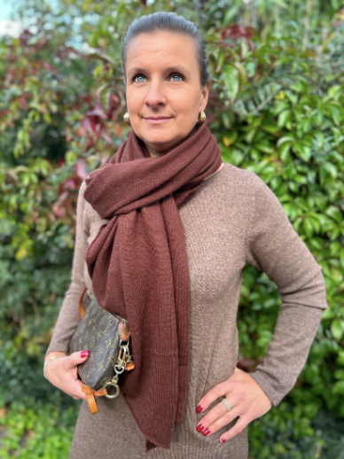 Tunn Kashmirscarf i chokladfärg. Wooow!