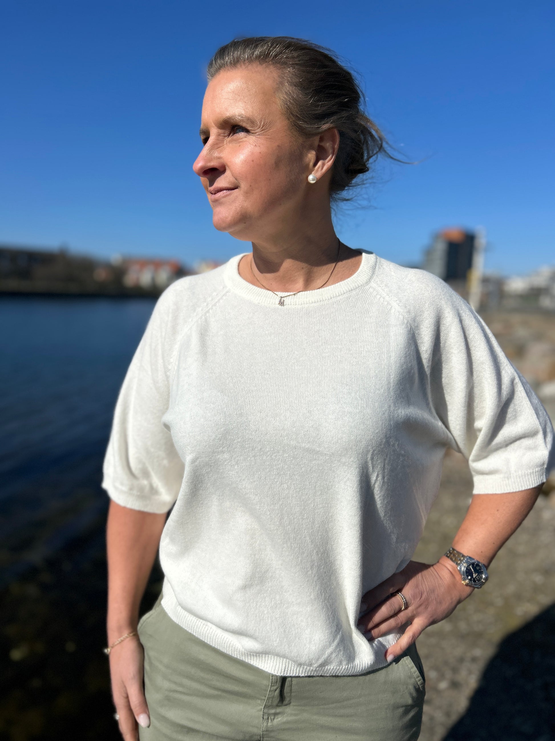 Så fin och skön! Älskar detaljerna och modellen - att den är lite längre i ryggen och ribbad i sidorna. Hade gärna haft den i helgrått utan glitter också 😊