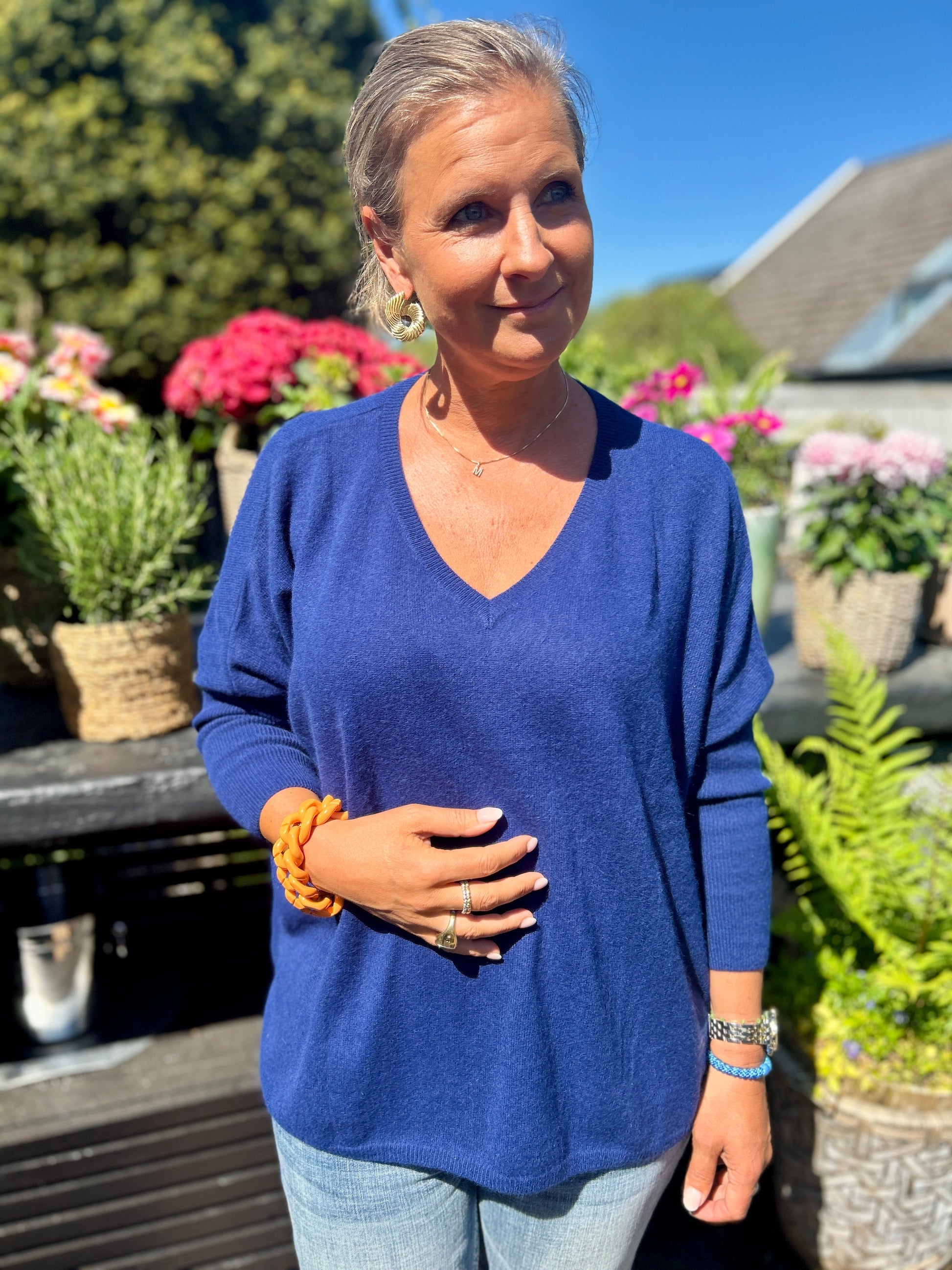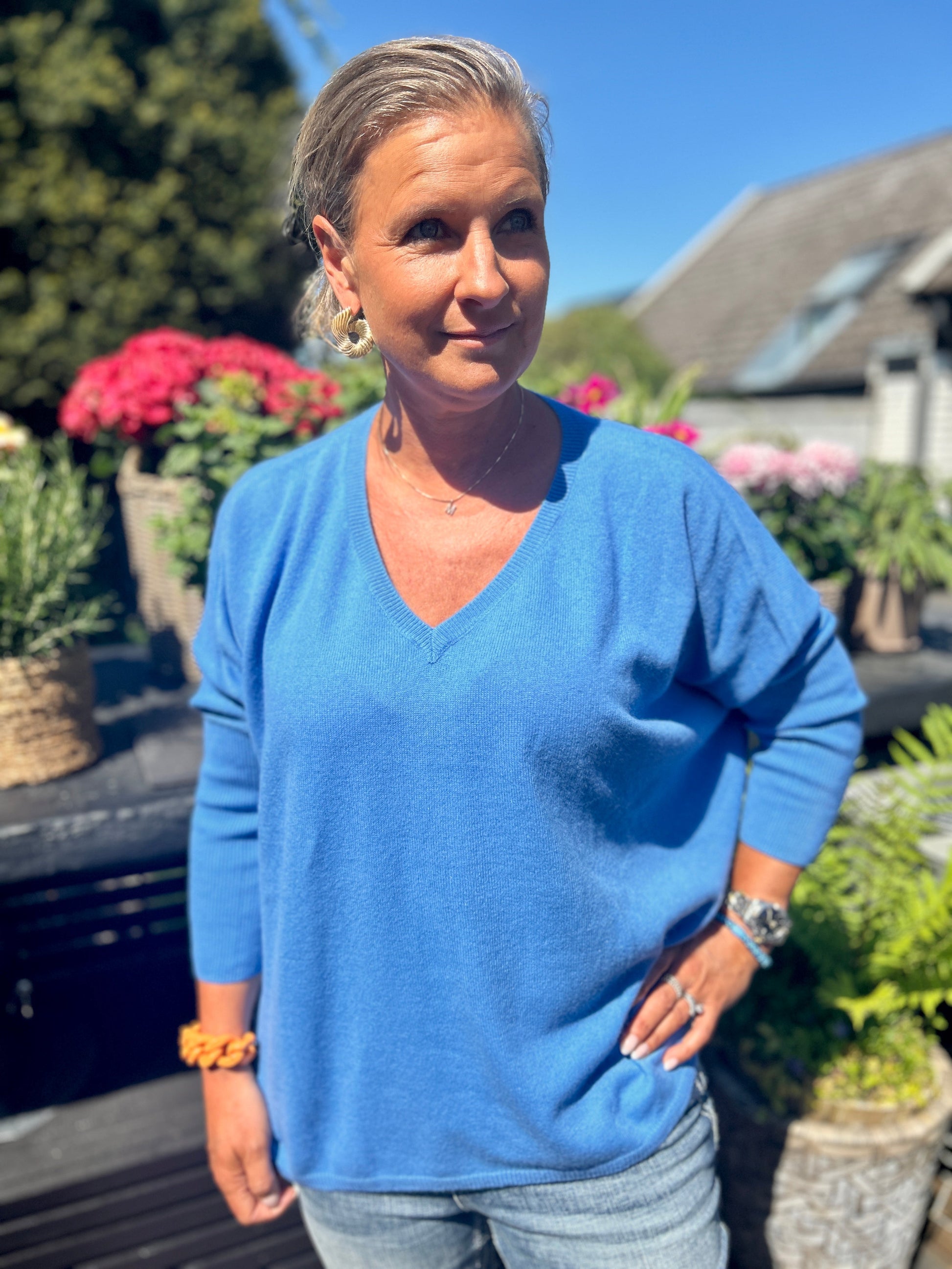 Underbart härlig tröja på alla sätt. Både i färg och form. Älskar den blå färgen och mysfaktorn nu till hösten har infunnit sig. Tröjan känns och ser lyxig ut. Snabb leverans och trevligt bemötande som vanligt. Har hittat ett av mina favoritställen att handla kashmir ifrån.