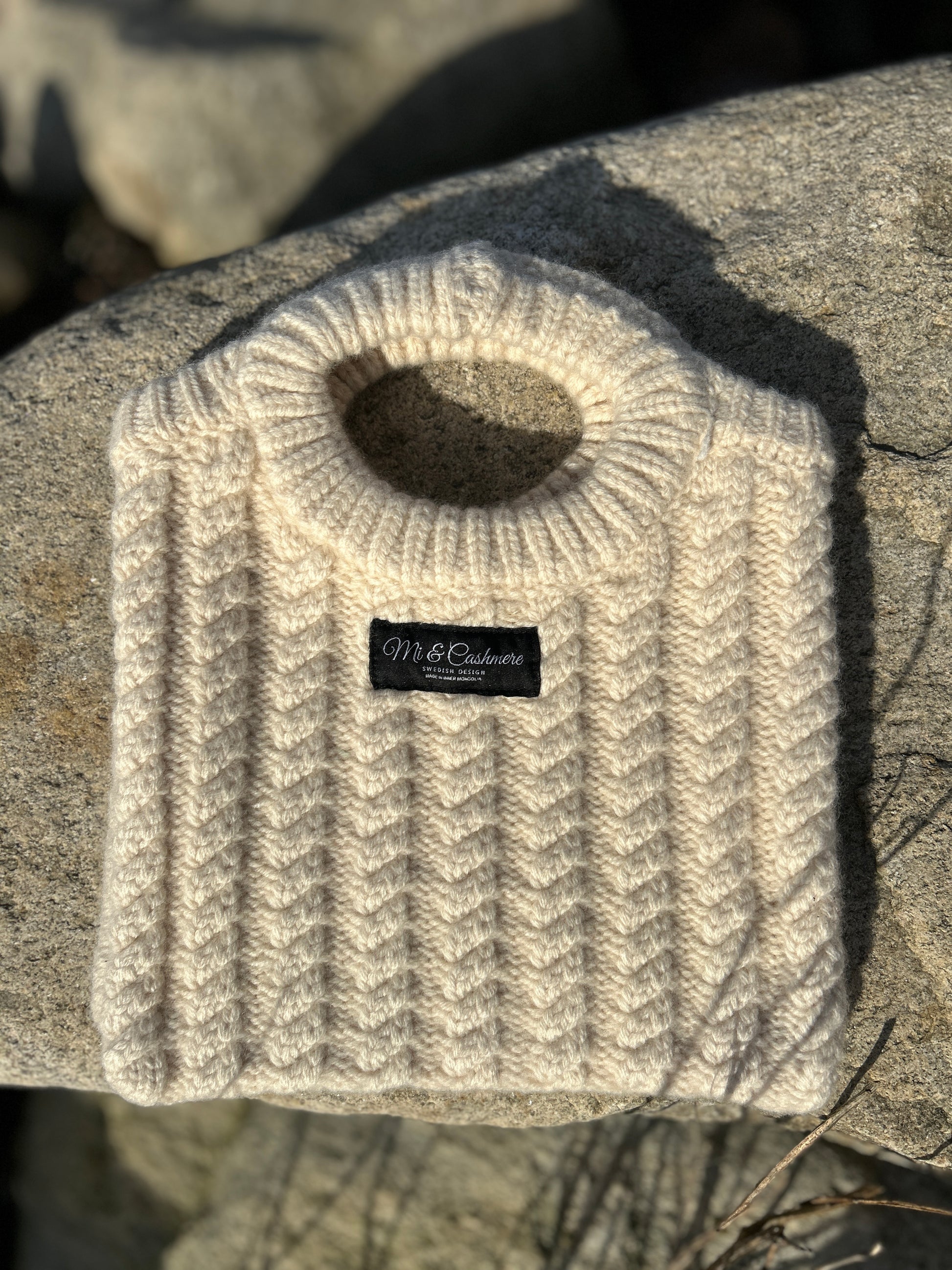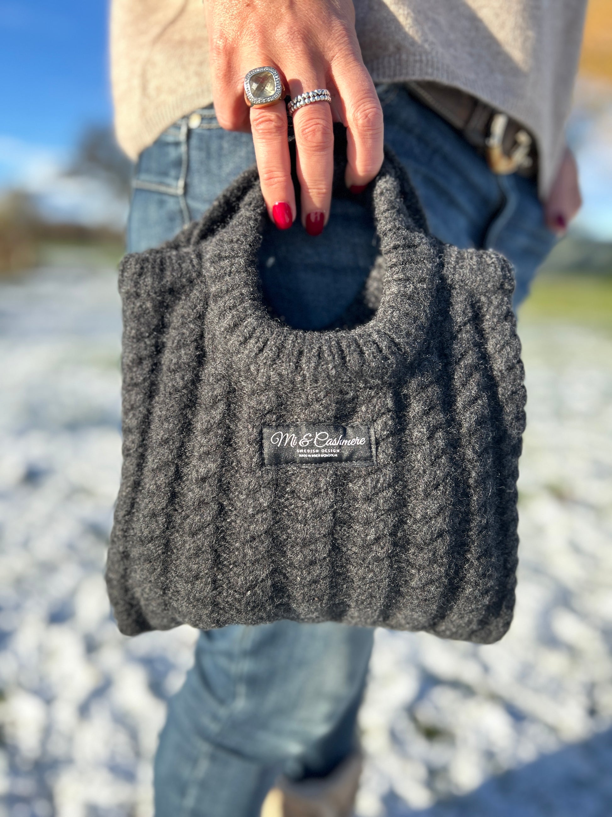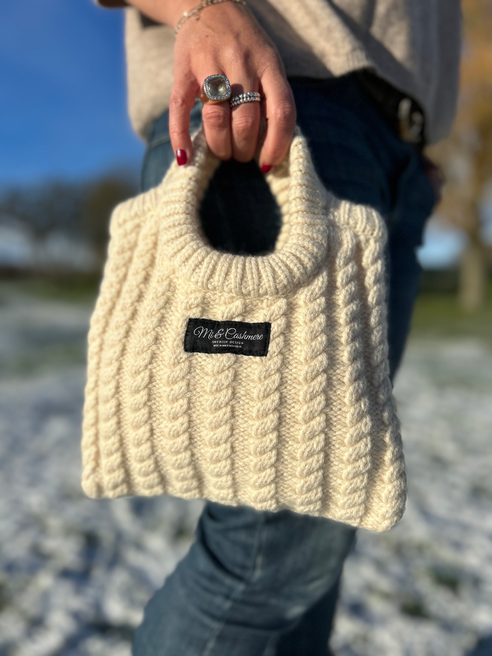 En virkad väska som kombinerar elegans och funktion – denna vita handväska är den perfekta accessoaren för dig som älskar tidlös stil. Med sin handgjorda struktur av 50 % kashmir och 50 % ull ger den en mjuk, naturlig känsla samtidigt som den är både lätt och slitstark. Den öppna designen och de stabila handtagen gör den smidig att bära, medan det virkade mönstret ger en exklusiv men avslappnad look. Perfekt som liten handväska dam till vardags eller som en mini väska att bära med stil.