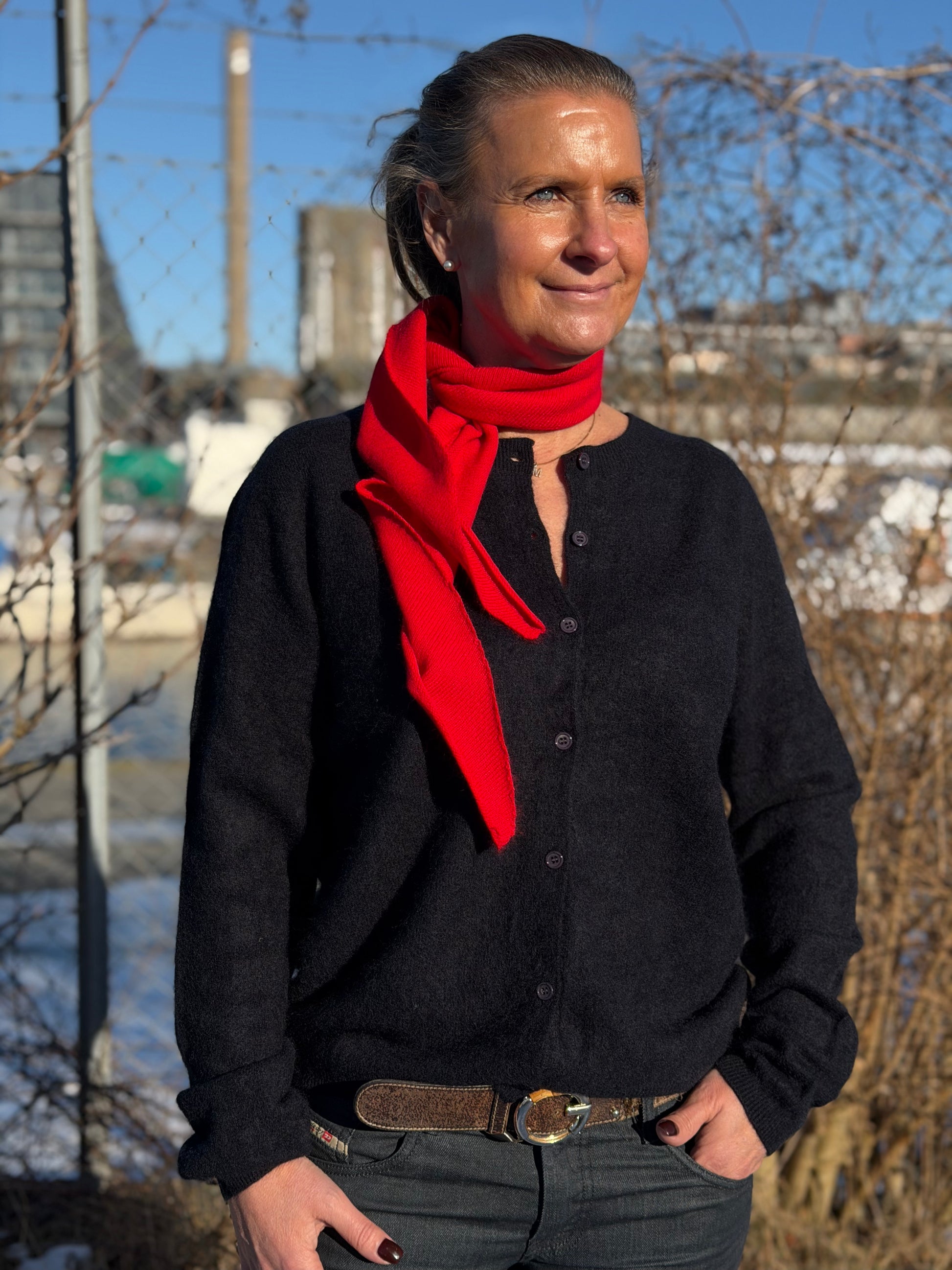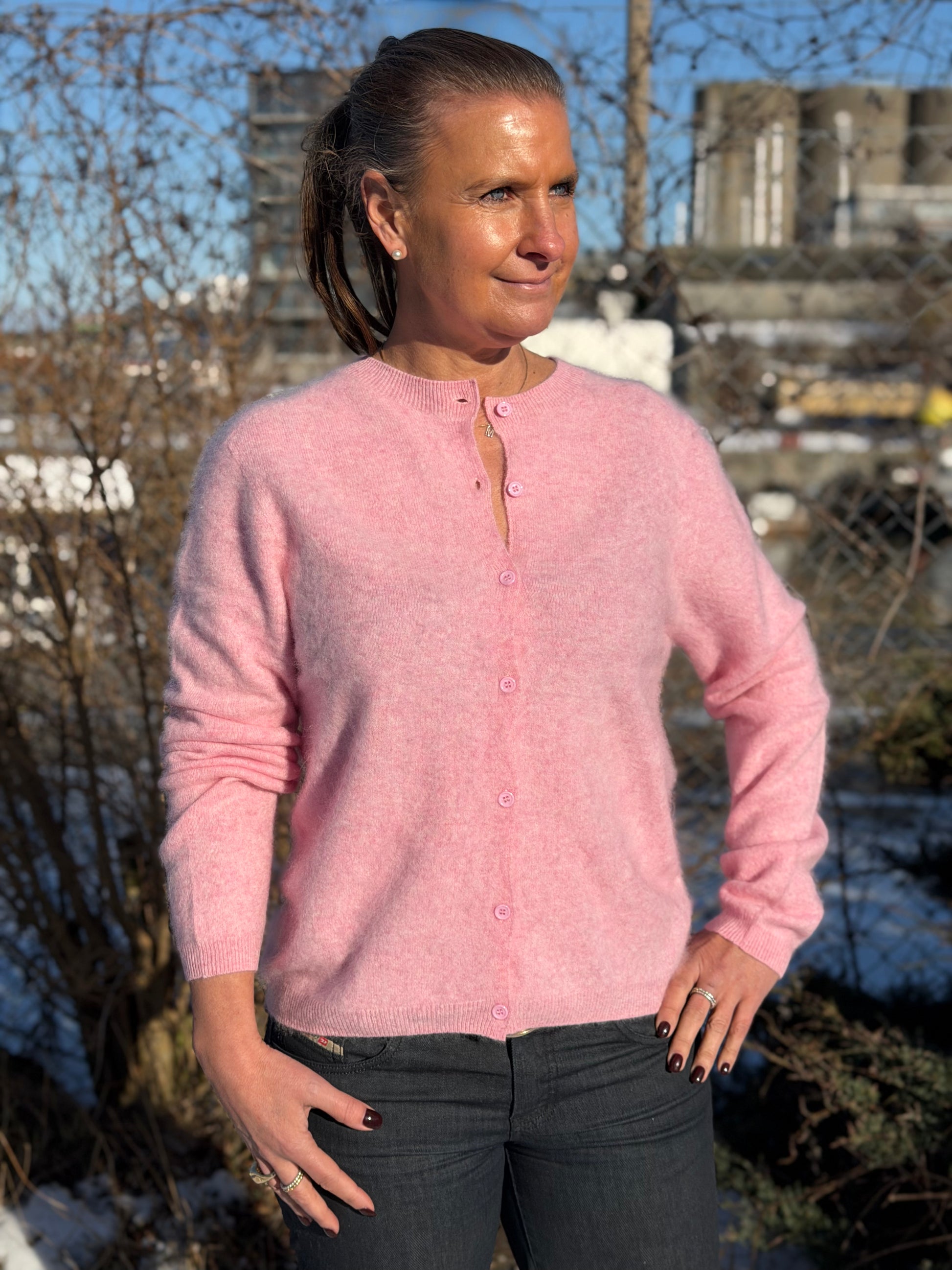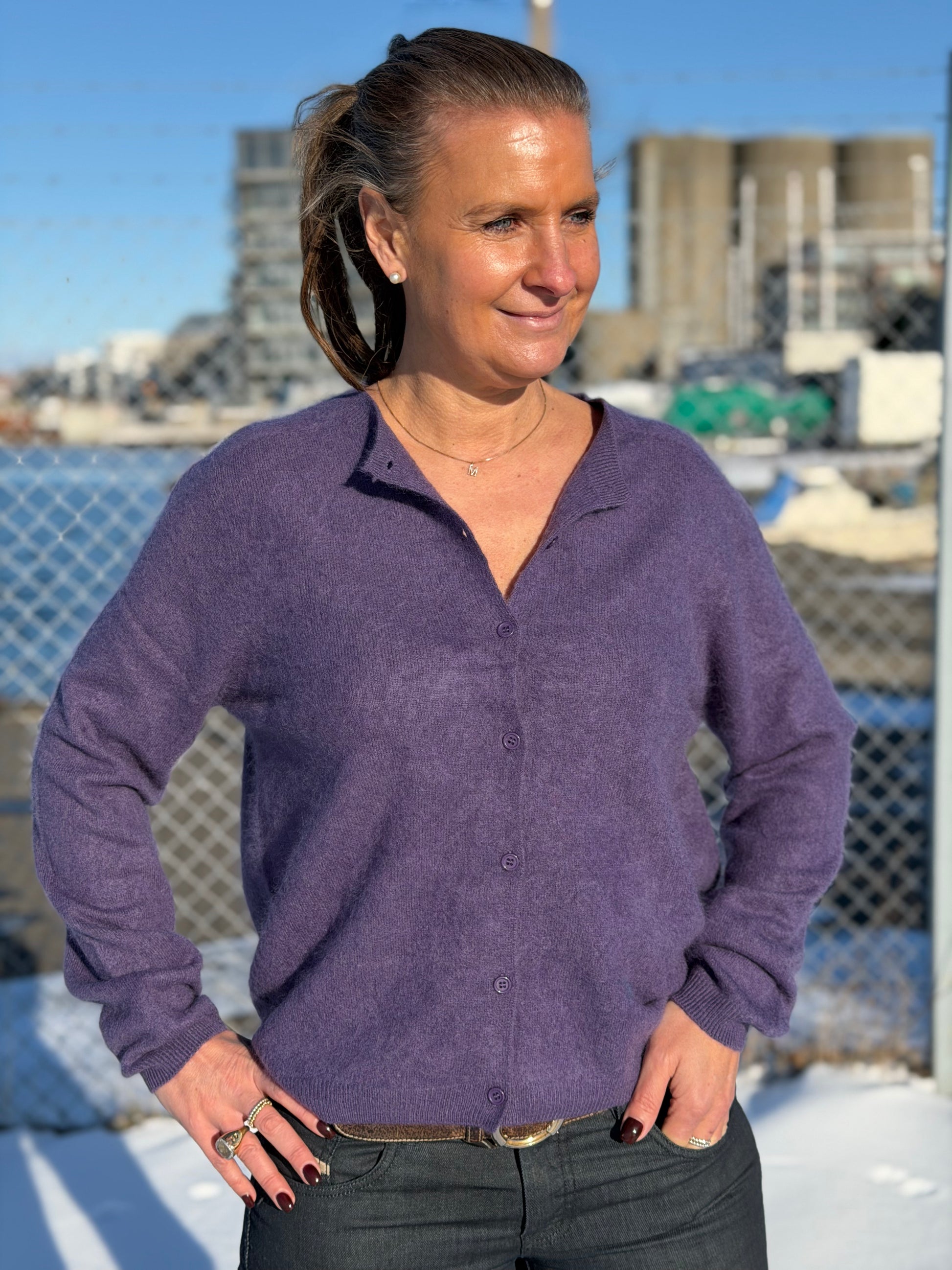 Den här borstade koftan med små knappar och rund hals är en sådan favorit jag alltid vill ha nära till hands. Den är mjuk med den där fluffiga, borstade känslan som gör att den känns varm utan att bli tung. De små knapparna ger ett fint, diskret uttryck och gör det enkelt att styla den på flera sätt, knäppt som en klassisk kofta eller öppen över en topp, skjorta eller klänning. Och vill du ändra uttrycket lite kan du enkelt vika ner kragen så att du får en fin v-ringning. Den mjuka mixen av 20% kashmir och 80% ull ger både den lyxiga känslan och den där sköna värmen du vill bära om och om igen.